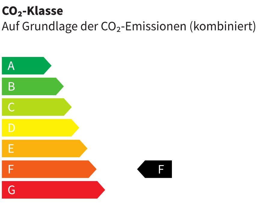 * Die Informationen erfolgen gemäß der Pkw-Energieverbrauchskennzeichnungsverordnung. Die angegebenen Werte wurden nach dem vorgeschriebenen Messverfahren WLTP (Worldwide harmonised Light-duty vehicles Test Procedures) ermittelt. Der Kraftstoffverbrauch und der CO₂-Ausstoß eines Pkw sind nicht nur von der effizienten Ausnutzung des Kraftstoffs durch den Pkw, sondern auch vom Fahrstil und anderen nichttechnischen Faktoren abhängig. CO₂ ist das für die Erderwärmung hauptsächlich verantwortliche Treibhausgas. Ein Leitfaden über den Kraftstoffverbrauch und die CO₂-Emissionen aller in Deutschland angebotenen neuen Pkw-Modelle ist unentgeltlich in elektronischer Form einsehbar an jedem Verkaufsort in Deutschland, an dem neue Pkw ausgestellt oder angeboten werden. Der Leitfaden ist auch hier abrufbar: https://www.dat.de/co2/